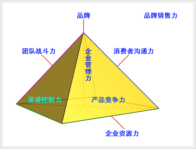 3、企業(yè)管理力:企業(yè)管理力的高度是品牌金字塔的中垂線,決定著品牌能夠成長(zhǎng)到的高度