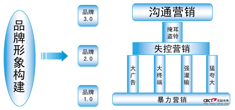 品牌1.0是暴力營(yíng)銷(xiāo)的時(shí)代,以大廣告、大終端、強(qiáng)灌輸、猛夸大為特點(diǎn),在改革開(kāi)放初期廣告效果明顯。品牌2.0是失控營(yíng)銷(xiāo)時(shí)代,使用暴力營(yíng)銷(xiāo)的廠家越來(lái)越多,廣告花費(fèi)越來(lái)越大,而消費(fèi)者被暴力營(yíng)銷(xiāo)練出了廣告免疫能力,營(yíng)銷(xiāo)效果卻越來(lái)越差。