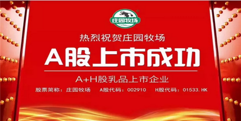 2018-03-12 16:41:002017年10月31日上午,西北乳業(yè)的排頭兵——蘭州莊園牧場(A股票代碼:002910)正式登陸A股市場,成為國內(nèi)首家A+H股乳品上市企業(yè)!此次登陸深圳證券交易所是蘭州莊園牧場股份有限公司發(fā)展史上的一塊里程碑,上市儀式在深圳證券交易所舉行,志起未來作為戰(zhàn)略合作伙伴,一路見證蘭州莊園牧場由產(chǎn)業(yè)向資本的嬗變之路。 蘭州莊園牧場股份有限公司董事長馬紅富在上市儀式上表示,偉大的組織都會有一個高遠的目標(biāo),莊園牧場始終以“奉獻精良品質(zhì),造就時代品牌”為使命,努力塑造西部知名品牌,建設(shè)全體員工共同信仰的現(xiàn)代企業(yè)文化,力爭成為中國一流的乳品企業(yè)。歷經(jīng)十多年的拼搏奮進,莊園牧場由一家地處國家級貧困縣的小型民營企業(yè)成長為了區(qū)域市場龍頭企業(yè)。今天,在深交所成功上市,標(biāo)志著莊園牧場距離這個夢想的實現(xiàn)又更進一步!