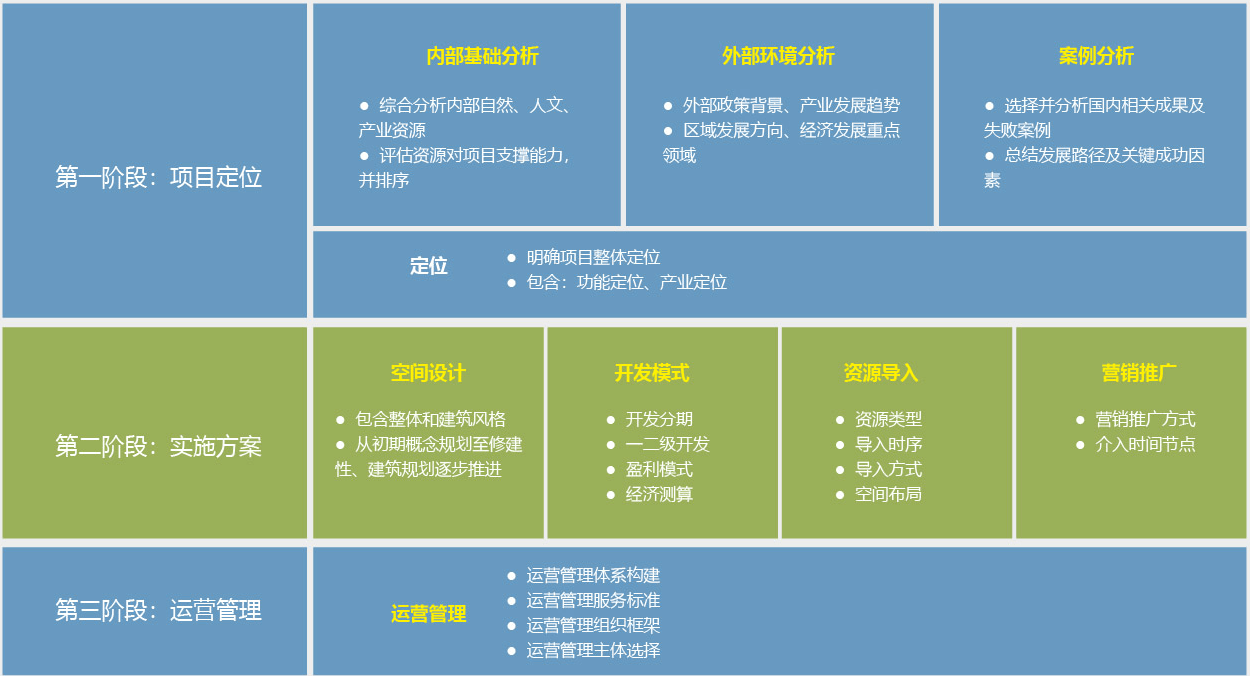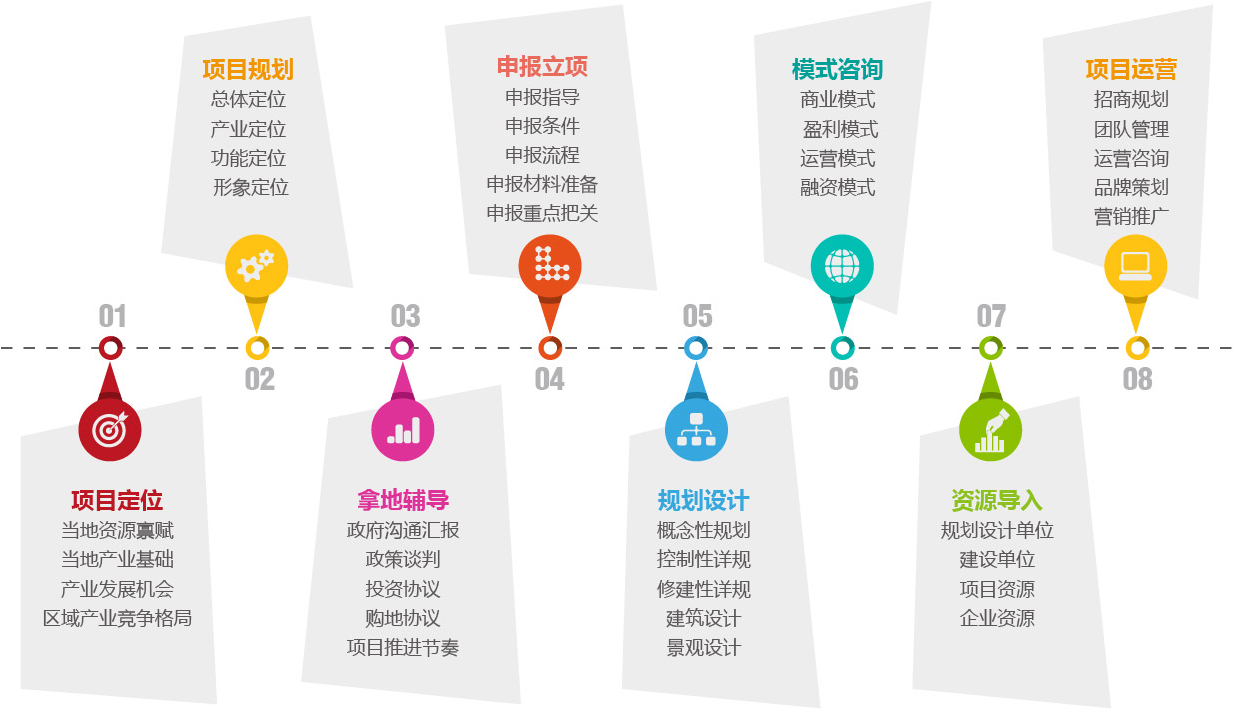 我們提供“產(chǎn)業(yè)定位+項(xiàng)目策劃+拿地輔導(dǎo)+申報(bào)立項(xiàng)+規(guī)劃設(shè)計(jì)+模式設(shè)計(jì)+資源導(dǎo)入+項(xiàng)目運(yùn)營”全流程服務(wù)。